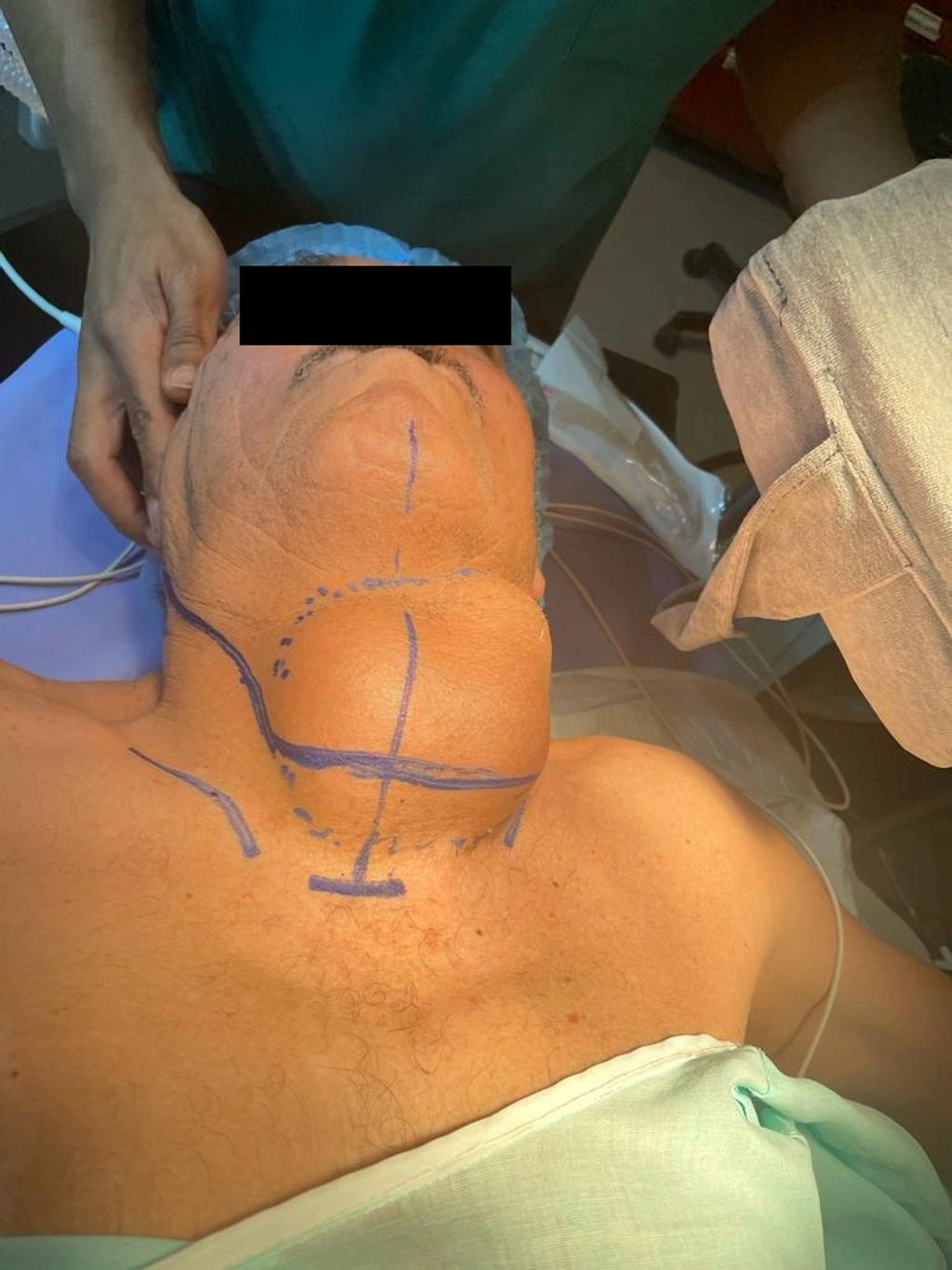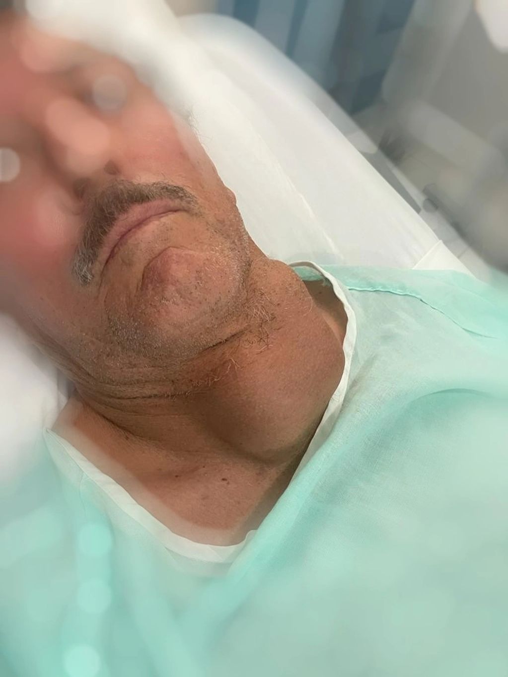 Este paciente llevaba años con doctores los cuales le habían dicho que su cáncer en el cuello era inoperable y el cáncer como podemos ver en la imagen continuo creciendo al rededor de su cuello.