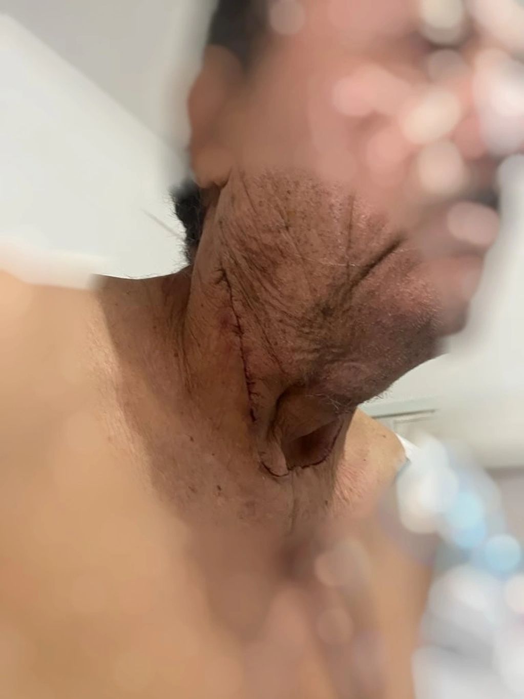 Después de hora de operación pudimos extraer el cáncer y poder restaurar su cuello, así nuestro paciente gozará de una vida más normal después de años.